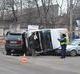 В результате столкновения микроавтобус перевернулся и задел еще одно авто - Volkswagen Passat, который пропуска на перекрестке автомобиль SsangYong. В результате незначительно пострадал только водитель микроавтобуса.