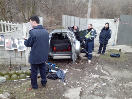 Заряженное оружие «для самозащиты» возили в багажнике авто пять сотрудников охранной фирмы, рассказал начальник Днепропетровского городского управления ГУМВД Украины Виталий Глуховеря. Машину без номеров остановили в районе 12 квартала в Днепропетровске. В багажнике автомобиля обнаружили два государственных номера (старого и нового образца), флаги Украины и России, 9 касок, рации, громкоговорители, портреты Гоголя и Шевченко, два заряженных помповых ружья.