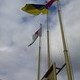 В момент подъема флага организаторы праздника выпустили десятки голубей, которые взмыли в небо Днепродзержинска. Один из голубей тут же уселся на флагшток прямо над поднятым знаменем Украины и сидел так до конца мероприятия.