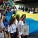 На площади Ленина парад задержался у установленного рано утром за постаментом памятника Ленину мемориального камня "Герои не умирают". Камень был освящен по христианскому обряду, при этом помянули погибших за Украину.