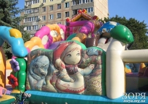 На дитячому майданчику на житломасиві Тополя-2 (напроти кінотеатру «Січ») знаходжу одразу дві яскраві надувні гірки-батути. Атракціони майже нічим не відрізняються. Працюють з квітня по жовтень у сонячні дні з 9 ранку до 9 вечора. Обидві гірки прикрашають казкові персонажі — на одній Червона Шапочка, на другій — Сірий Вовк. Пострибати з «Шапочкою» — 12 грн. за 10 хвилин (20 грн. — 20 хв.), з диким звіром — уже по 15 гривень десятихвилинка. Другий атракціон стоїть порожній. Оператор батута ситуацію не коментує. Говорить, питання до власників. Сергій, відповідальний за «Червону Шапочку», із задоволенням вступає в розмову: