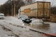 Потік води затопив проїзну частину.
