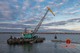 Теперь возле острова работает баржа с краном, который начал свою работу