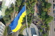 На площади Героев Майдана самый большой в городе украинский флаг подняли на высоту более 20 метров.