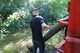 Сотрудники ГСЧС с помощью троса достали автомобиль на обочину дороги.