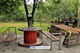 Отсутствие авто, деревянная детская площадка, газон, много деревьев и кустов, гамаки, уличная мебель из дерева и даже собственный мангал!