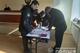 Когда избирательные бюллетени поступают на избирательный участок, их помещают в сейф и опечатывают.