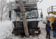 Грузовой автомобиль Mercedes врезался в бетонную опору электропередач и протянул ее почти на 5 метров.