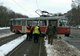 Трамвай развернуло поперек трамвайных рельсов.