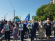 Под красно-черными и сине-желтыми флагами пешая колонна отправилась к мемориальному комплексу в Парке памяти и примирения.