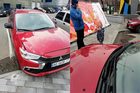 В Днепре в парке Зеленый Гай на автомобиль рухнула рекламная конструкция.