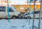 Водитель маршрутки решил перестроиться и начал маневр. Совершая его, он протаранил легковой автомобиль.