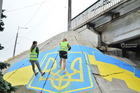 Ко Дню города молодежь покрасила стелу «Дніпро» на въезде в город