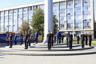 У криворізькому парку Героїв пройшли урочистості до Дня Прапора. Підняли один із головних державних символів – величезний синьо-жовтий стяг. Він замайорів на 72-метровому флагштоці.