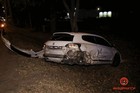 Несмотря на то, что с момента аварии прошло больше, чем полдня, 146-я все еще висит на ветке дерева возле тротуара.