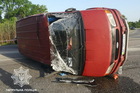 От удара микроавтобус перевернулся, водителя забрала скорая.
