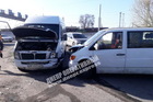 В Днепре на Донецком шоссе внедорожник Porsche Macan «подрезал» микроавтобус Mercedes, в результате чего последний врезался в фуру.
