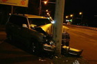 В Днепре на Набережной произошло ДТП - внедорожник Toyota Land Cruiser на большой скорости врезался в столб, пострадал водитель.