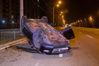 В ночь с воскресенья на понедельник на проспекте Слобожанском перевернулся автомобиль Mazda.