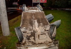 В Днепре на Набережной Победы Mazda вылетела на клумбу и перевернулась