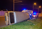 В Днепре на Набережной Заводской перевернулся микроавтобус