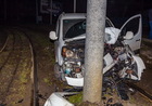 В Каменском Mercedes влетел в столб у железнодорожного моста