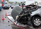 Ситуация закончилась столкновением на перекрестке, после которого итальянский фургон перевернулся на левую сторону.