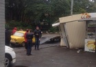Оба грузовых фургона вылетели на тротуар.