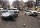 В Днепре столкнулись автомобиль такси и экипаж патрульной полиции.