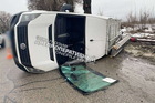 В Кривом Роге грузовик снёс остановку и перевернулся