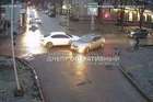 В Днепре на перекрестке Рабочей и Антоновича Daewoo влетел в столб: видео момента