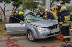 В Днепре на Набережной Заводской Audi на скорости влетел в Kia и задел Toyota: спасатели вырезали девушку из салона
