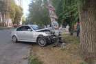 В Днепре на Кедрина BMW сильно разогнался и влетел в столб