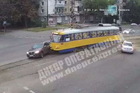 В центре Днепра пьяный мужчина неожиданно выскочил под движущийся трамвай