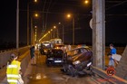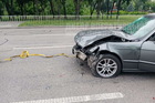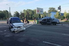 В Днепре на Набережной Победы автомобиль Daewoo врезался в автомобиль ВАЗ: от сильного удара ВАЗ отбросило в отбойник посередине дороги.