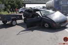 «Дрифт» поневоле: на въезде на Кайдакский мост грузовик протащил ZAZ (видео момента)