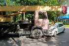 В Днепре сегодня, 12 июня, на улице Макарова у большегруза на ходу открылся борт, на автомобиль Honda высыпались камни.