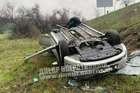 Утром 19-го апреля на Симферопольской трассе возле поселка Голубовка водитель Chevrolet Aveo не справился с управлением, съехал с дороги и перевернулся.