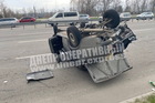 В Днепре на Выборгской столкнулись Daewoo и Toyota: оба автомобиля перевернулись