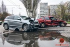 В Днепре на Маршала Малиновского столкнулись Opel и Mitsubishi: автомобили вынесло на тротуар