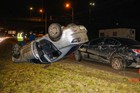 В Днепре возле Кайдакского моста столкнулись две Mazda: одно авто перевернулось