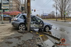 В Днепре легковой автомобиль предварительно попал в занос на выезде с моста, водитель не справился с управлением и машину вынесло в столб перед остановкой общественного транспорта. Момент ДТП зафиксировала камера Ситуаційного центра міста Дніпра.