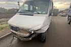 В Днепре на Гаванской у микроавтобуса оторвало колеса во время движения: одно из колес врезалось в Skoda