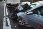 На выезде из Днепра столкнулись грузовик, Volkswagen, Hyundai и маршрутка: движение затруднено
