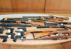 Во время обыска по месту жительства разбойника было изъято 5 пистолетов, 2 глушителя, корпус гранаты РГД-5 и запал к ней, а также 177 патронов калибра 9 мм.
