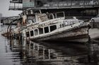 За последний месяц тонущий корабль в речном порту Днепра стал жутко популярным для фотографов и любителей экстрима.