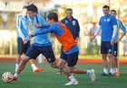 В этот день была запланирована одна тренировка, которая началась в зале, где игроки занимались гимнастикой, а продолжилась на футбольном поле. Ребята под непрекращающийся дождь позанимались с мячом, и на этом занятие закончилось.