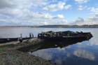 Из-за снижения уровня воды в реке Днепр на поверхность выплыло много разных предметов.