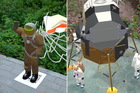 Неделю назад в парке появились космические обитатели из дополненной реальности. Но прошла неделя и все наклейки с кодами исчезли.