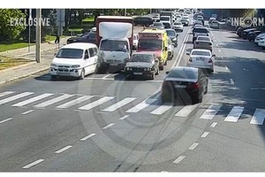 В Днепре на Сичеславской Набережной столкнулись два автомобиля Toyota: видео момента